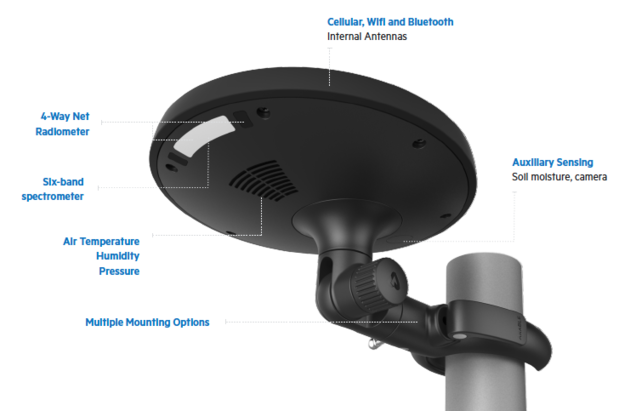 Si chiama Pulsepod, ha la forma di un frisbee e funziona ad energia solare. Il suo obiettivo? Rendere l’agricoltura prevedibile. Nel poco spazio che occupa racchiude numerosi sensori quali uno spettrometro a sei bande ed un radiometro, permettendo di monitorare i parametri climatici e prevedere tempi e livelli di precipitazioni. Il dispositivo si collega infatti ad un cloud online che permette di elaborare i dati e offrire una stima delle condizioni meteorologiche locali.