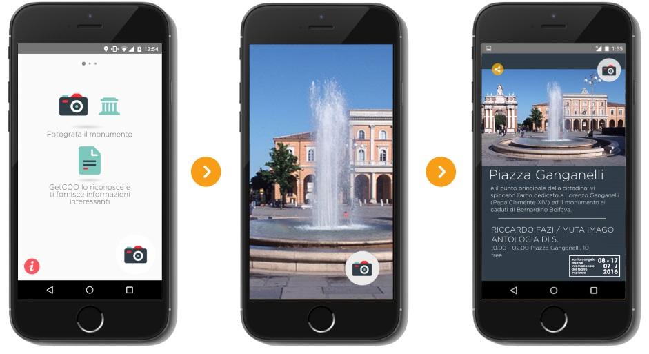Non poco tempo fa si viaggiava con macchina fotografica in una mano, caricata con rullino, guida cartacea nell’altra e, quando si aveva tempo, ci si metteva d’accordo con una guida turistica del luogo. Nell’ultimo decennio, lo sviluppo del web, e della tecnologia in generale, ha portato al superamento di mezzi e modi “di fare” il turista: stranieri con una reflex caricata a rullino, non se ne vedono più e, probabilmente, tra non molto, anche le classiche guide turistiche cartacee verranno sostituite da nuovi mezzi. GetCOO è un applicazione multipiattaforma per il riconoscimento fotografico dei monumenti: grazie al motore di ricerca per immagini, scattando una foto è possibile consultare una scheda sul monumento fotografato, completa di immagini e link di approfondimento.